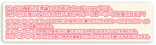 PS Vita版『乙女理論とその周辺 -Bon Voyage-』には、前作『月に寄りそう乙女の作法』のアフターストーリーが収録されます!
