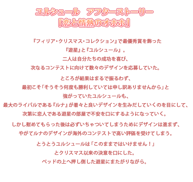 『フィリア・クリスマス・コレクション』で最優秀賞を飾った『遊星』と『ユルシュール』。